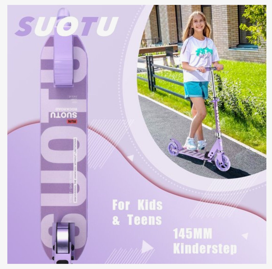 Op deze stijlvolle Suotu kinderstep raas je door de straten met mooie LED licht gevende wielen. De kleurrijke step bevat spons handgrepen voor een comfortabele grip tijdens het steppen. Zo kan een kind tot wel 50 kg een stabiele, soepele en leuke rit beleven op de kinderstep. Met het verstelbare stuur is de ideale hoogte te verstellen om een unieke trip te maken!