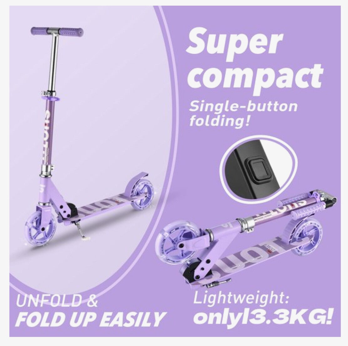 Suotu kinderstep met Led verlichting | verstelbare stuur | tot 50 kg | paars