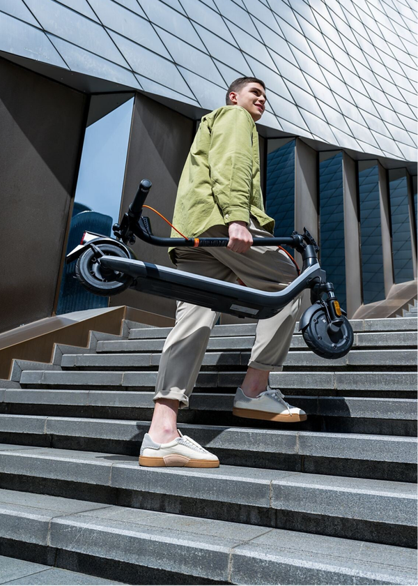 De E2 Plus E 2 Segway by Ninebot step beschikt over een gebruiksvriendelijke ontwerp met een innovatief vouwsysteem waarmee binnen twee klikken de e-step moeiteloos opgevouwen en opgeborgen of meegenomen kan worden. De Segway Ninebot KickScooter is in één stap uit te klappen. Je kunt hem gemakkelijk dragen om in een lift te stappen, in het openbaar vervoer, op te bergen of in de kofferbak van je auto te leggen.