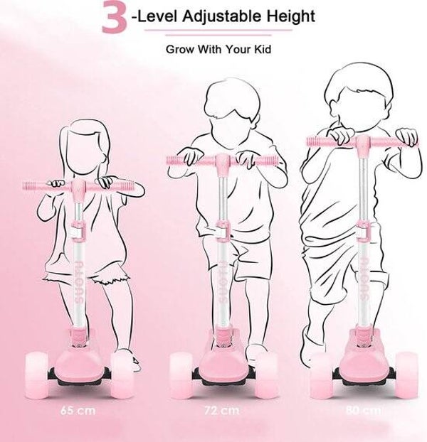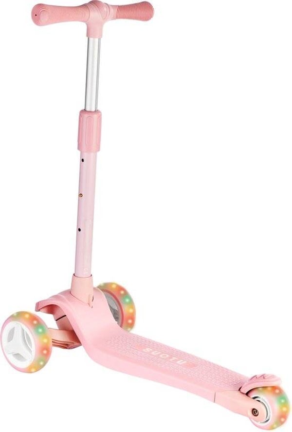 Suotu kinderstep | Lichtgevende wielen | verstelbare stuur | 3-12 jaar | roze